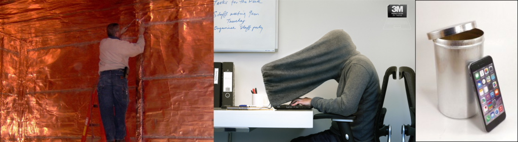 Mobile networks and SigFox are available almost everywhere and the attacker doesn’t need to be around to catch the signal. RF shielding can block all wireless implants — a metal bucket will do the job. There are also commercial products available for phones and other small devices. Looks too paranoid? Depends on the amount you own…